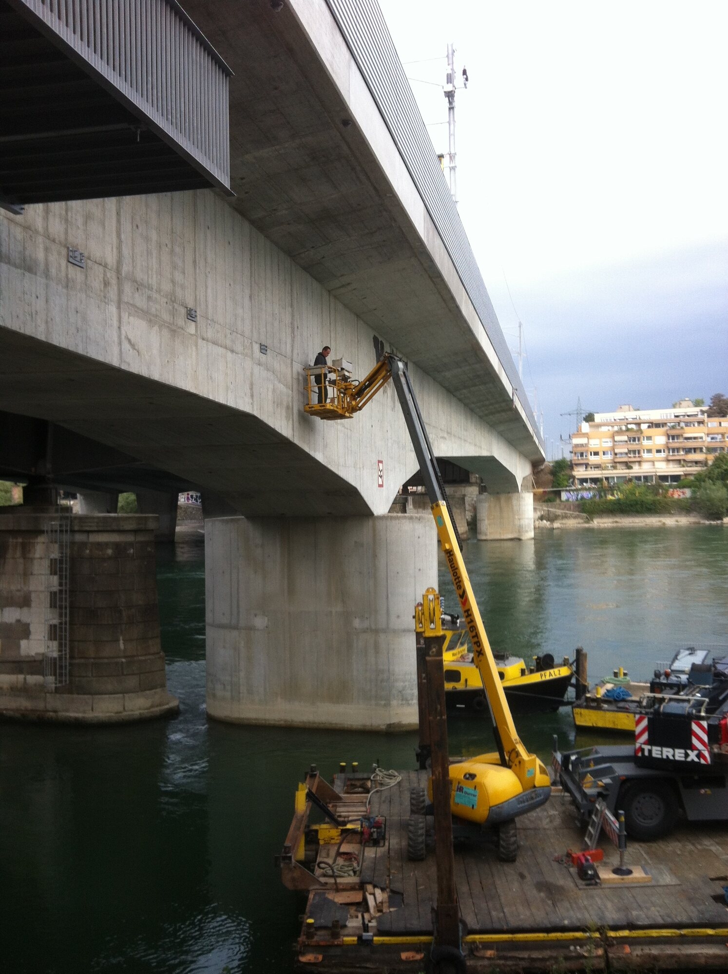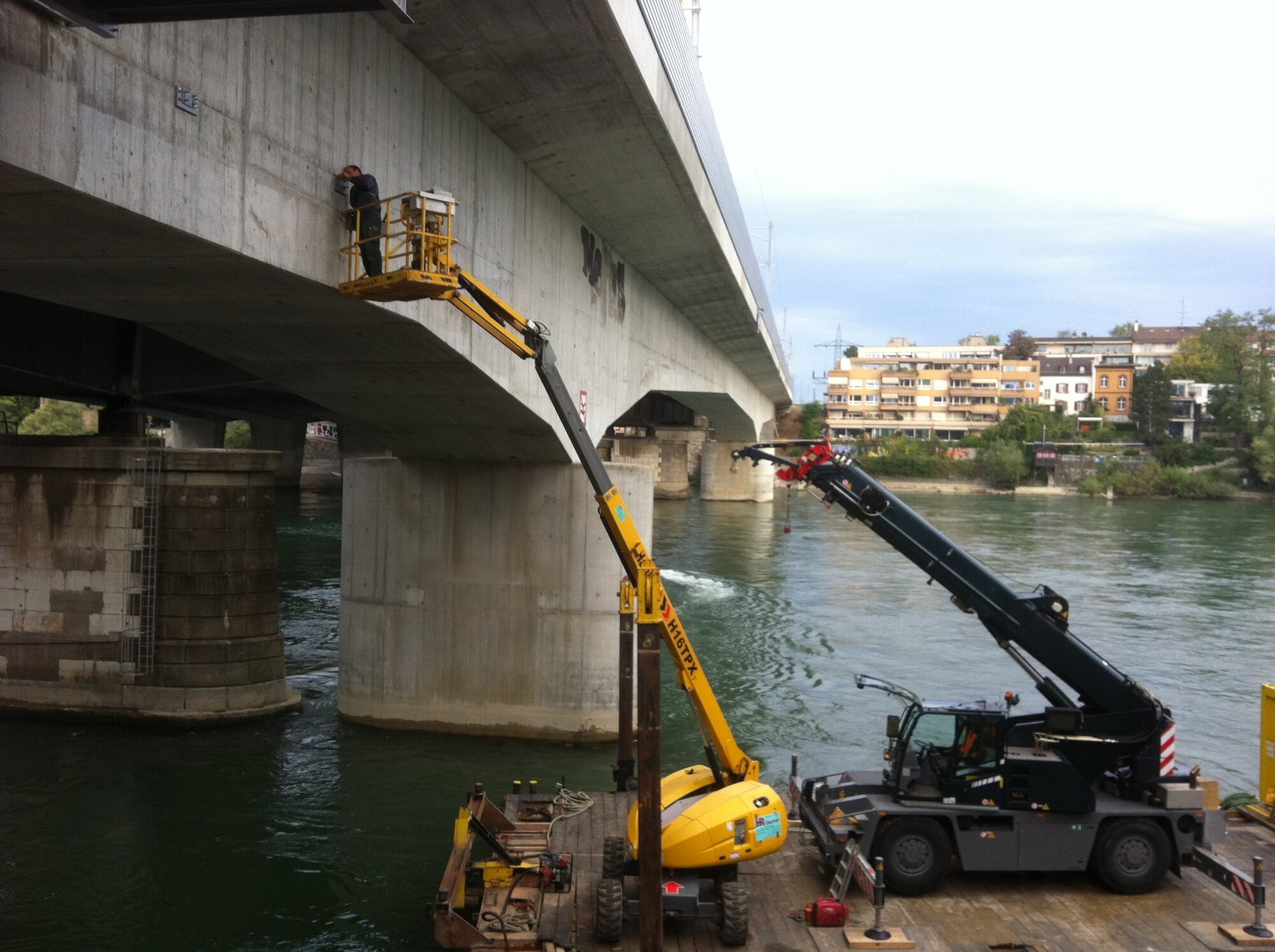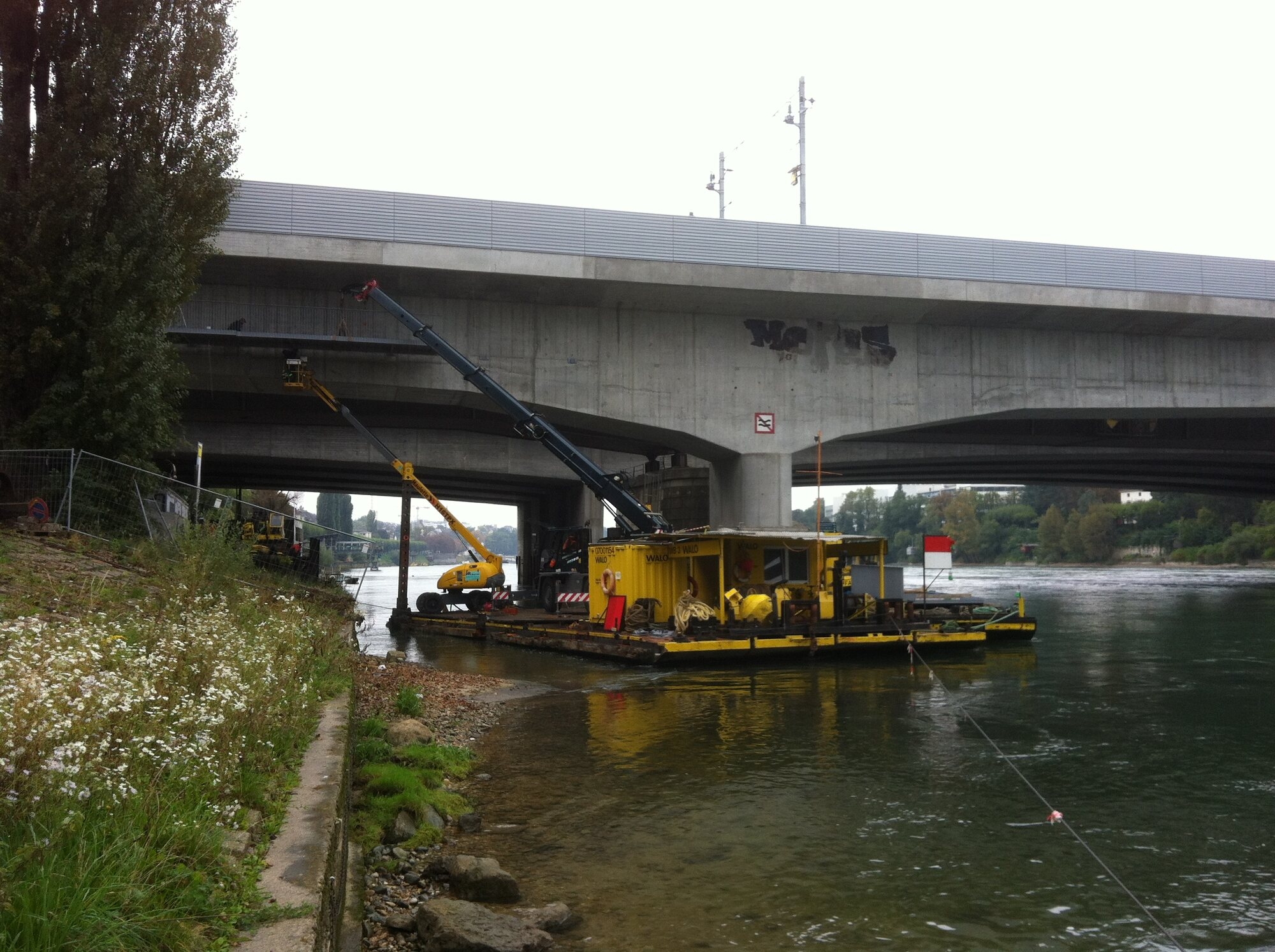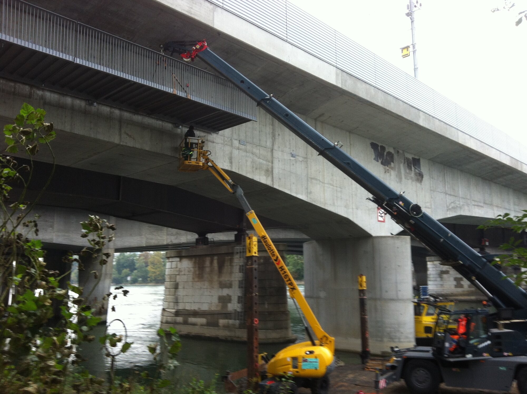 Montage vom Ponton mit Pneukran und Hebebühne.