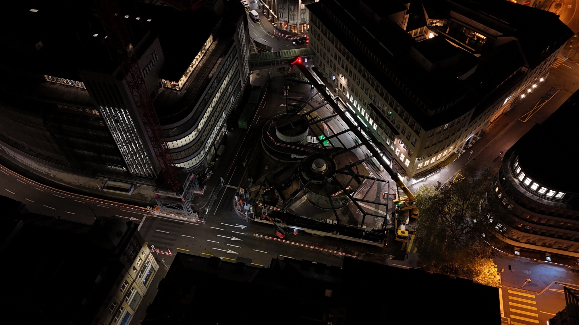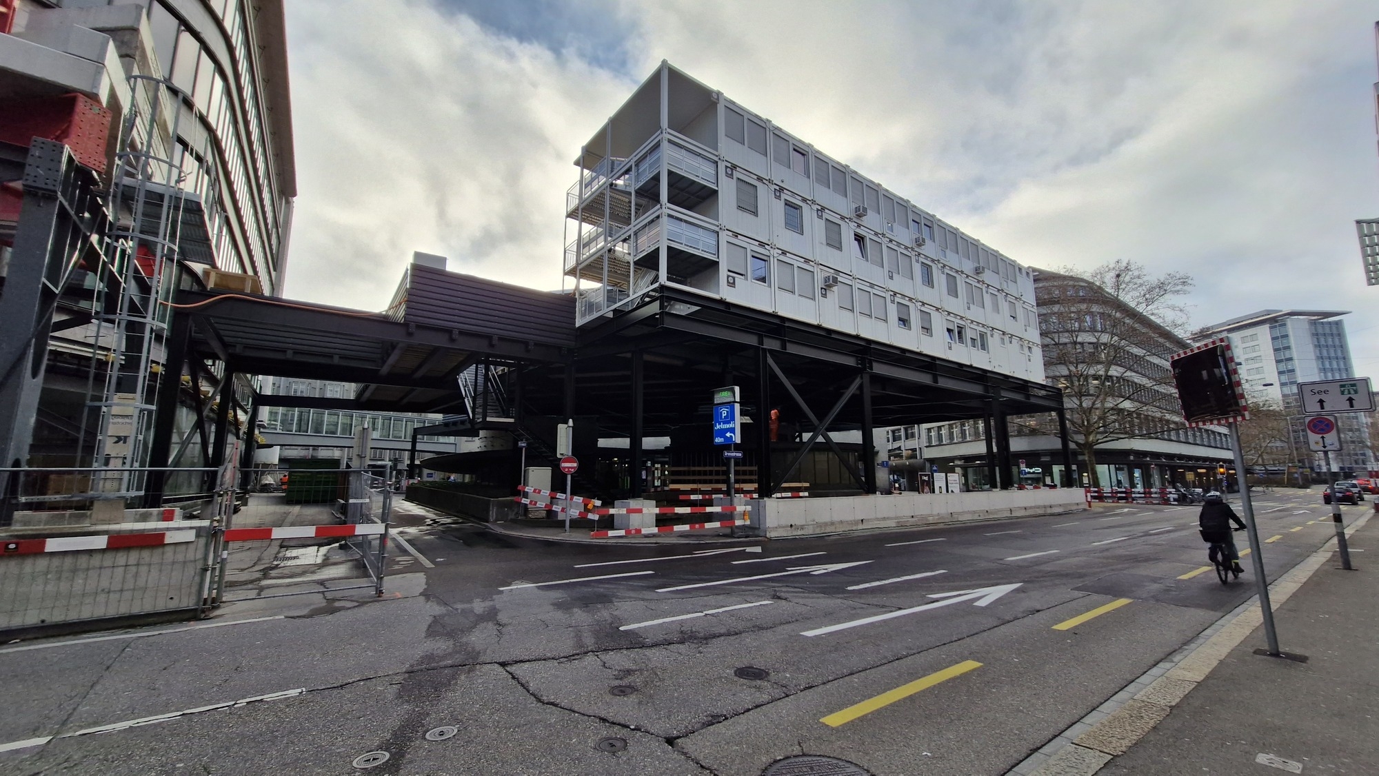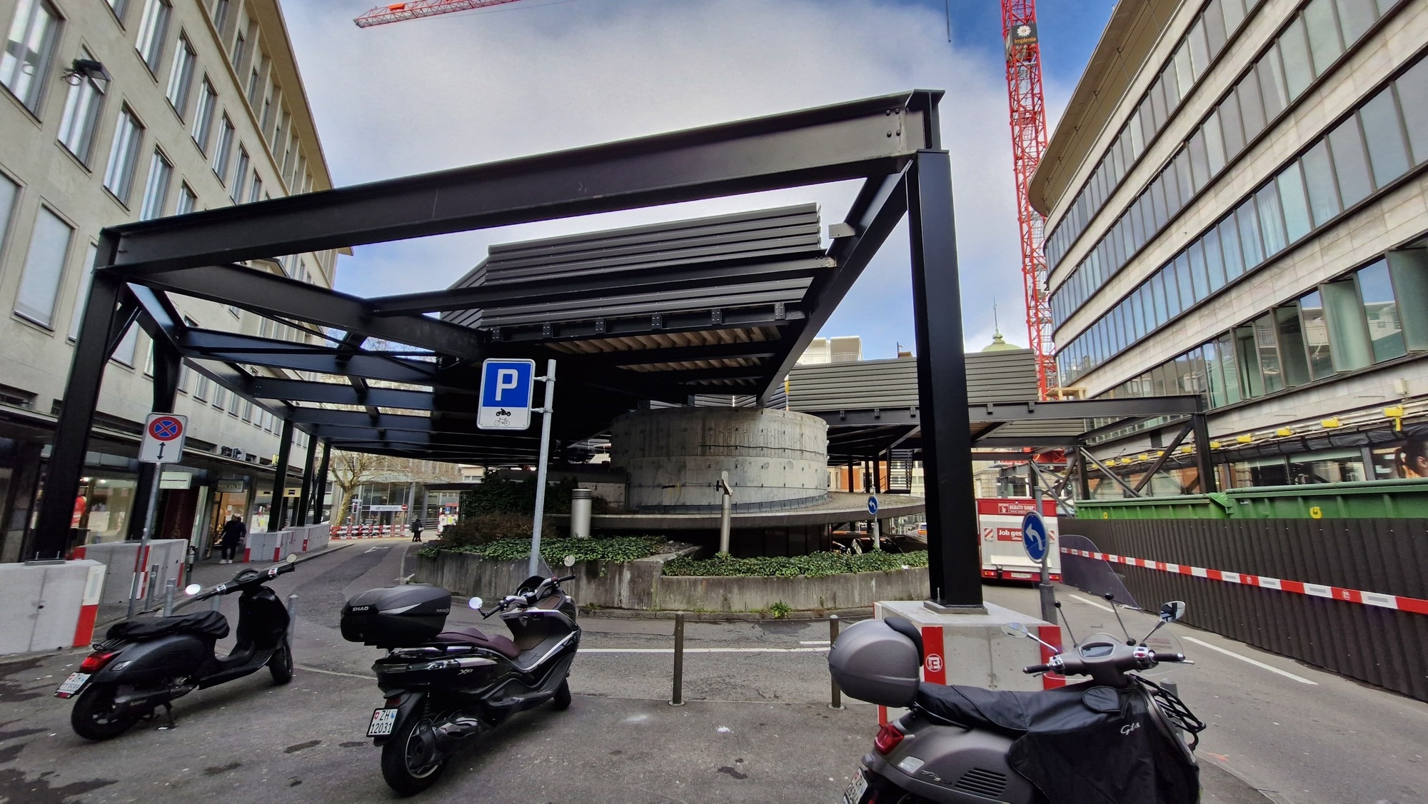 Massive Installationsbühne, welche für den Umbau des ehemaligen Gebäudes von Jelmoli genutzt wird.
